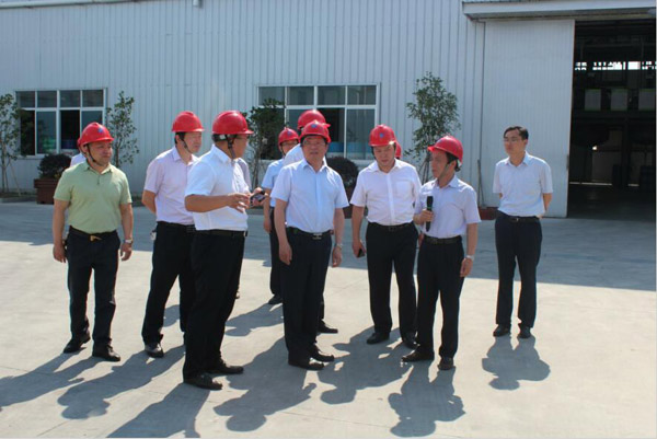 2017年6月16日,中共海安縣縣委副書記、縣長顧國標(右四)一行領導專程來科星化工有限公司深入調(diào)研。江蘇科星集團董事長吳龍鐵(右二)陪同縣領導在現(xiàn)場參觀并作詳細介紹。
