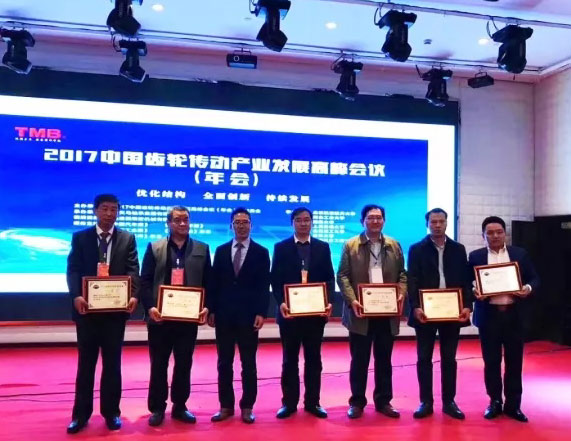 2017年11月22日,“2017中國齒輪傳動產(chǎn)業(yè)發(fā)展高峰會議”在杭州舉行,我公司被中歐齒輪協(xié)會授予“2017年齒輪產(chǎn)業(yè)科技進步成果一等獎”,董事長吳龍鐵被授予“中國齒輪傳動產(chǎn)業(yè)特別貢獻獎”。
