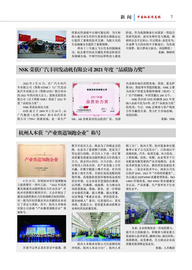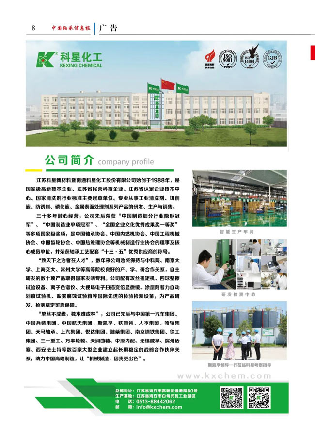 中國軸承信息報(bào)2022年第4期節(jié)選轉(zhuǎn)載,科星化工詳見第八頁。