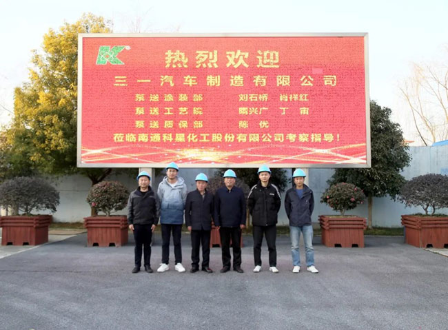 2023年2月20日,三一汽車制造有限公司泵送涂裝部劉石橋、肖祥紅,工藝部隋興廣、丁宙,質(zhì)保部陳優(yōu)蒞臨江蘇科星新材料暨南通科星化工股份有限公司考察指導(dǎo),科星董事長(zhǎng)吳龍鐵、銷售經(jīng)理李春華熱情接待。