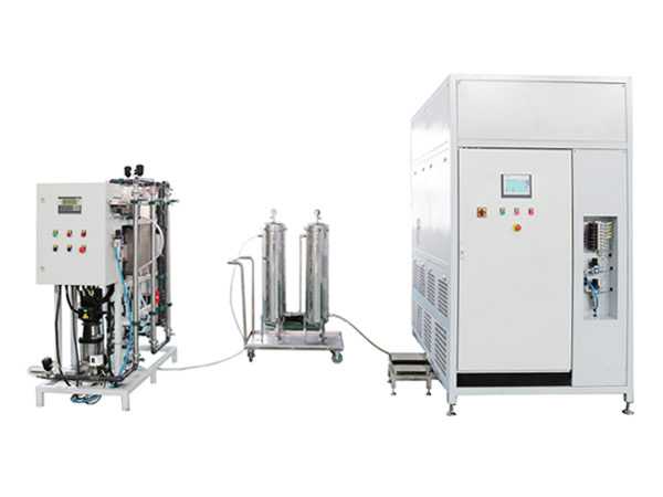 該設(shè)備在預(yù)處理階段采用多介質(zhì)過濾器、活性炭過濾器、鈉離子軟化床去除泥沙、余氯、懸浮物、部分重金屬離子,通過精密過濾器攔截水體中膠體、小顆粒,經(jīng)過反滲透膜(RO膜)去除水體中絕大部分離子,脫鹽率可以達(dá)到98.5%以上,二級反滲透膜再次脫鹽,超純水電導(dǎo)率可以達(dá)到在5μS/cm以下。